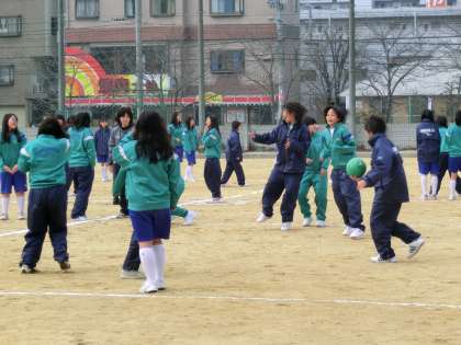 寒かったこともあり最初は乗り気でない人もいてたようですが、どのクラスも優勝を目指して頑張り、円陣を組んで一致団結して試合に臨んでいるクラスもありました。