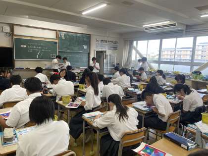 美術の授業の様子です。真剣に作品づくりをしていました。