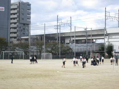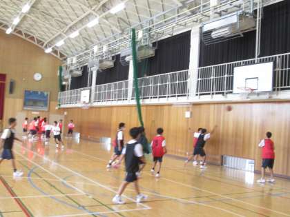 体育の様子です。男子がバスケット、女子がハンドボールをしていました。