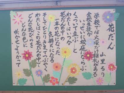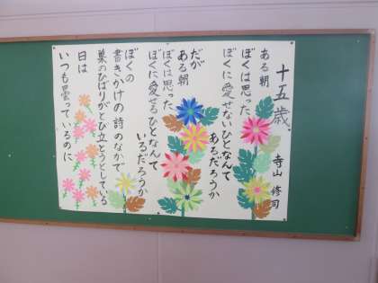 階段前の掲示板には、どの階もステキな詩が書かれた掲示物が掲げられていました。