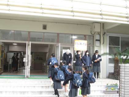 今日の朝はかなり寒かったです。生徒会役員さんと校風委員さんが元気に挨拶運動してくれました。