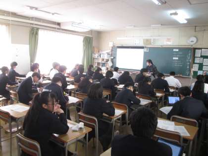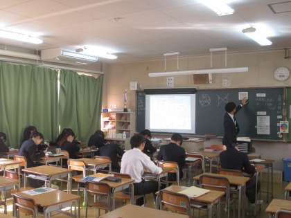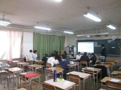家庭科・数学・英語です。数学では、いつものように数学係の指示で授業が進んでいます。