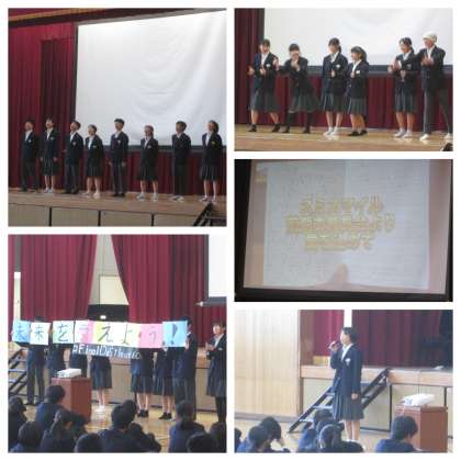 昨日に引き続き、生徒集会がありました。映像などを使いながら各委員会が工夫を凝らした報告をしてくれます。