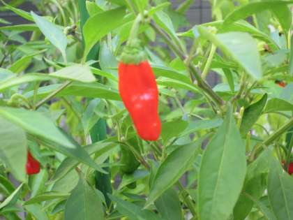 あすなろ学級前の菜園では、現在唐辛子がきれいな色を付け始めています。
