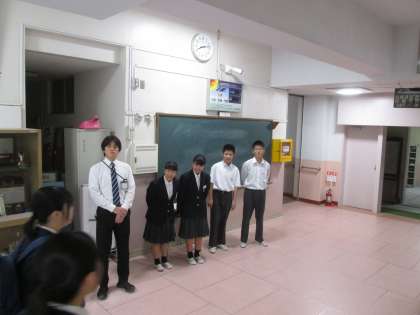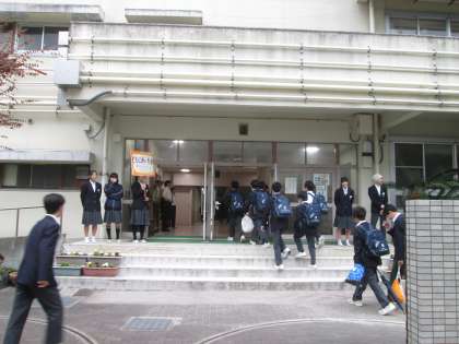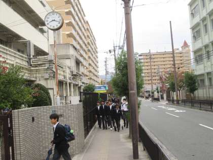 曇り空ですが、雨はなんとか大丈夫そうです。生徒会役員と校風委員さんが挨拶運動をしっかりしてくれています。