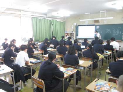 音楽・社会です。どちらの授業もしっかり取り組めています。進路の会議が終わり、担任の先生と進路について話す機会が多くなります。しっかり自分の4月からの姿をイメージして進路選択ができるようにしましょう。