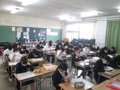 ここまで継続して取り組んできた「多文化共生学習」のまとめをおこないました。夜間中学生の作文を読んでいました。このあと「えんぴつポスター」を書きました。「自分にとって学びとはなにか?」しっかり考えていました。