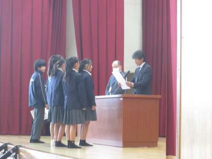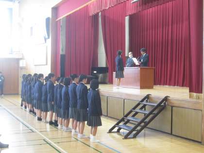 バドミントン部・女子バスケットボール部です。校長先生からは来月行われる「生徒総会」について、始まった当初のお話がありました。