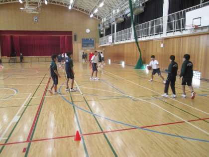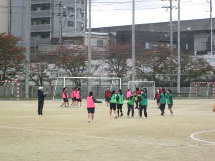 数学・体育です。女子の体育は、グラウンドでハンドボールの試合をしていました。