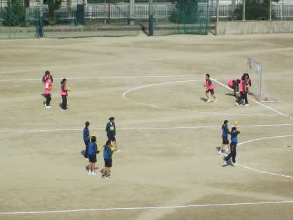 体育と家庭科です。バスケットの授業では、シュート練習をしていました。