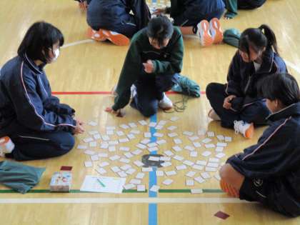 6時間目は、体育館で百人一首大会をおこないました。100首までいきませんでしたが、90首までおこないました。一生懸命、頑張りました。結果発表は後日行い、表彰も行います。