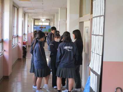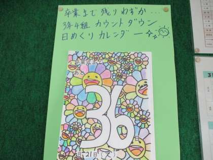 廊下で、学年の先生と話していました。各教室にはカウントダウンが掲示されています。