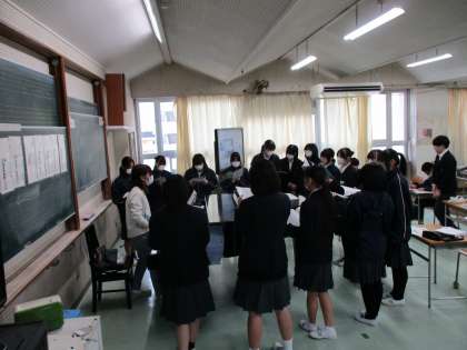 音楽・社会です。音楽では卒業式で歌う予定の「旅立ちの日に」の練習が始まりました。