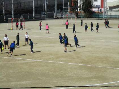 体育(男子)と技術です。男子は寒空の下、サッカーの試合形式をしていました。