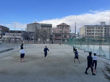 男子テニス部・ラグビー部・野球部です。風が冷たく痛く感じる中でしたが、寒さに負けず一生懸命頑張っています。