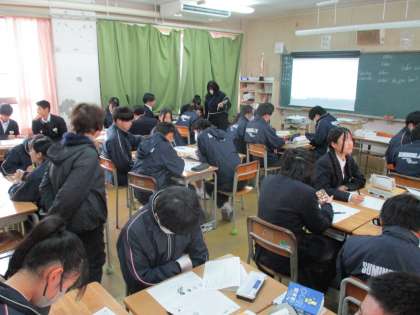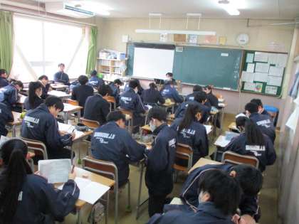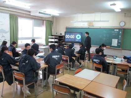 国語・英語・数学です。数学では、公立特別選抜に向けてのプリントをしていました。