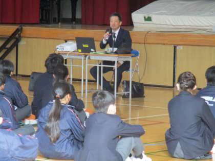 2時間目は、四條畷警察少年課の方に来校いただき、非行防止教室をおこないました。SNSの危険性を中心に話をしてくださいました。