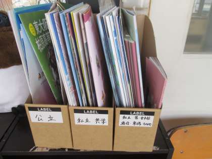 2年生の学年職員室前には、進路のパンフレットが置かれていました。