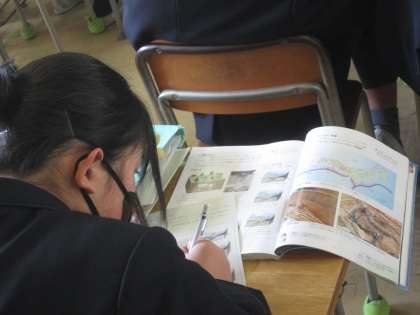 理科・音楽です。理科では。地震の発生の仕組みについて学習していました。