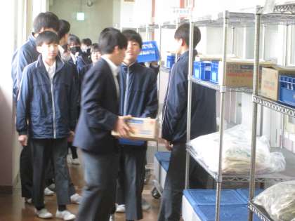 今日の給食は卒業メニューということもあり、ケーキがありました。ナンもあります。