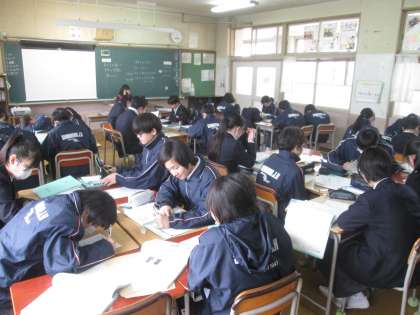 英語・理科です。理科では班で協力してプリント学習をしていました。