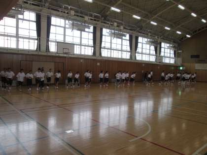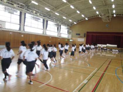 体育です。説明のあと、シャトルランをしていました。