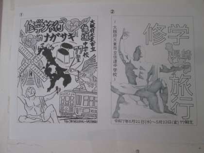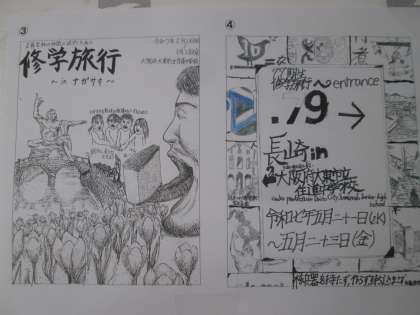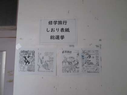 修学旅行の表紙の候補作品です。どれも味のある良い作品ばかりです。