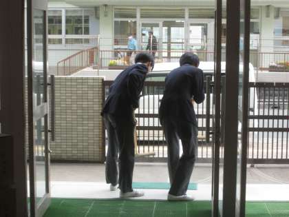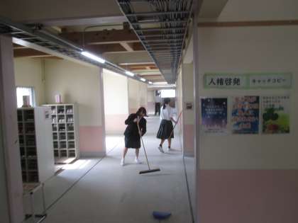 掃除時間の玄関付近です。3年生の担当の生徒が一生懸命掃除をしていました。
