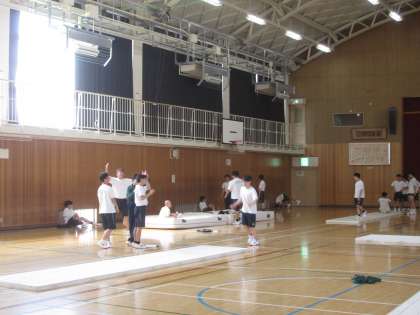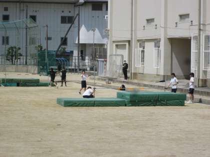 体育です。男子はマット運動をしていました。女子は高跳びをしていました。