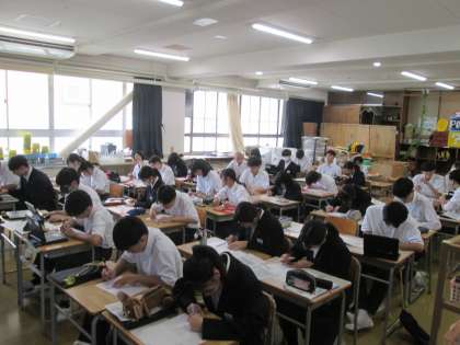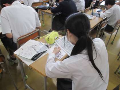 美術と英語です。美術では、名前プレートを真剣に作成していました。
