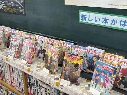 司書の先生が、キレイにレイアウトしてくれています。昼休み、放課後などに利用しましょう。