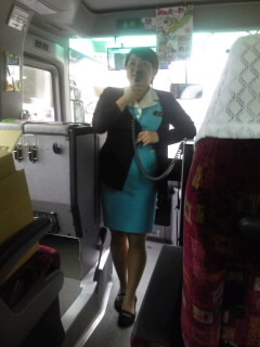 車内で添乗員さんの話を聞いています。
