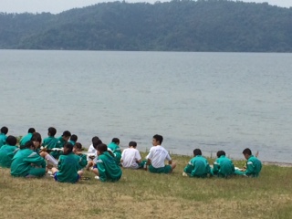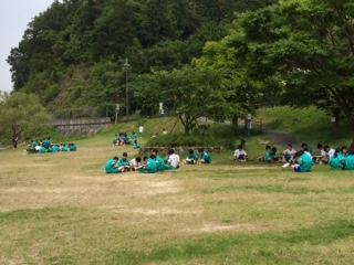 いかだで濡れた服を着替え終わり、少し遅いお弁当です。