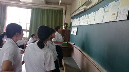 一時間目の授業で、クラス旗のデザインをどれにするか、クラスみんなで選びました。どのクラスも素敵なデザインが並んでいました。