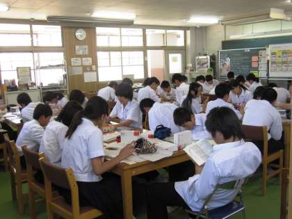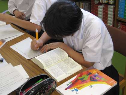 2年生が国語で意味調べをするために図書館に来ています。