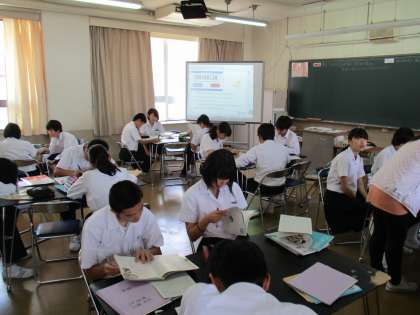 2年生の授業の様子です。英語は少人数による指導を行っています。