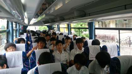 バスに乗り込みました。これから空港に向けて出発します。