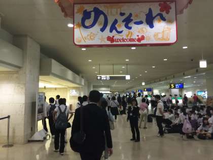 空港を出てバスへ向かいます!