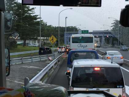 バスは、高速道路を降りて読谷村へ向かいます!