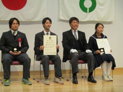 11月3日に開催された大東市の文化の日記念式典において、サッカー部は、平成26年度大阪中学校秋季総合体育大会サッカーの部で優勝したことに対してスポーツ賞を、1年生の城明日香さんは、第27回国際平和ポスターコンテストで最優秀賞を受賞したことに対して文化芸術賞を受賞しました。