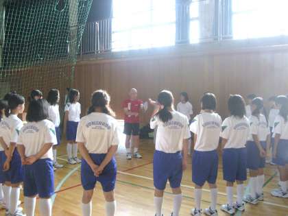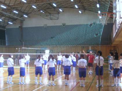 バドミントン部の指導に強力なコーチが来てくださいました。三洋電機の元バドミントン部監督の宇治さんです。現在スポーツ推進部長としてお忙しい中、わざわざ住中の指導のために来校してくださいました。
