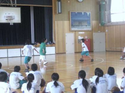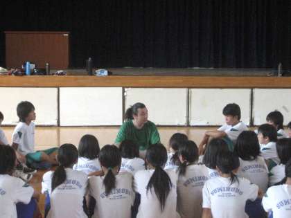 「情熱大陸」での内容のとおり、森下雄一郎さんは本当に情熱的ですばらしい方でした。プロとしての技術指導はもちろん、バスケットボールに取り組む姿勢などについてもご自身の経験をもとに子どもたちに語りかけてくださいました。