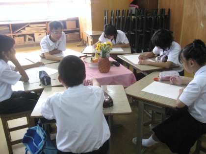 写真は1年:美術・2年:英語・3年:理科の授業風景です。