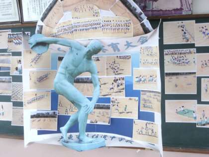 玄関黒板も体育大会バージョンになりました