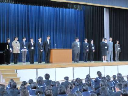 校歌斉唱・式辞の後、新しく本校に赴任された先生方の紹介を行いました。