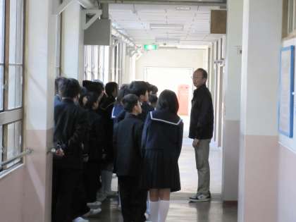特別教室、図書室、保健室、職員室などを回って担任や担当の先生から説明を受けました。