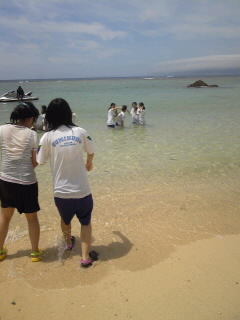 女子は水遊び。