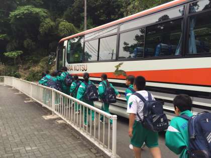 山道をくだりきり、バスに到着しました!