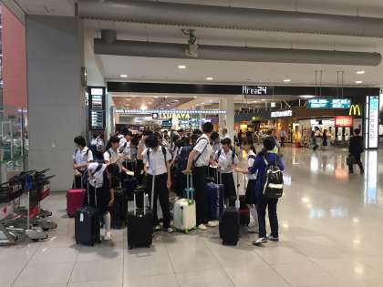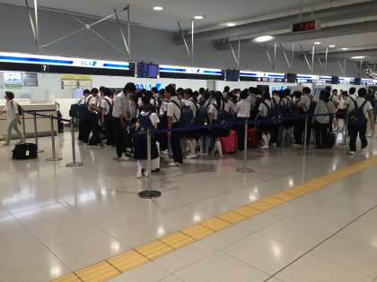 荷物を預けます。1度に200名以上の荷物を預けるため、順番待ちをしています。