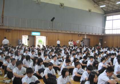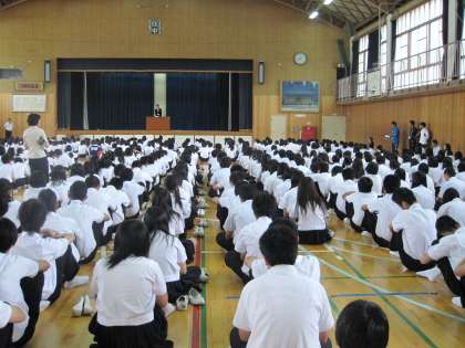 完全夏服になって初めての朝礼です。一面の白さに「もうすぐ夏」を感じます。